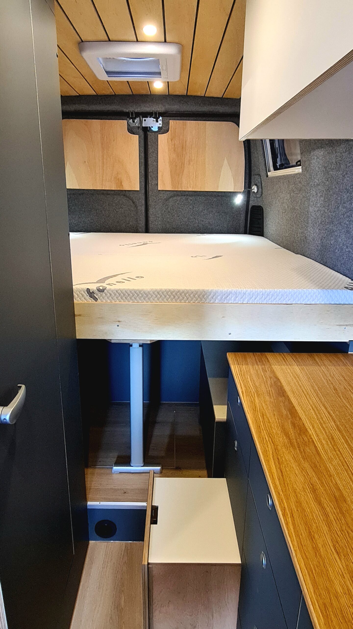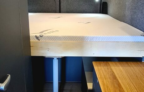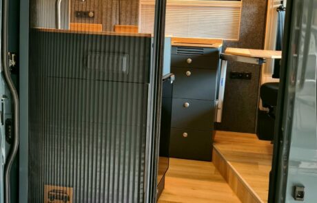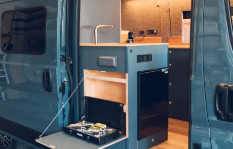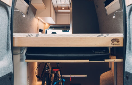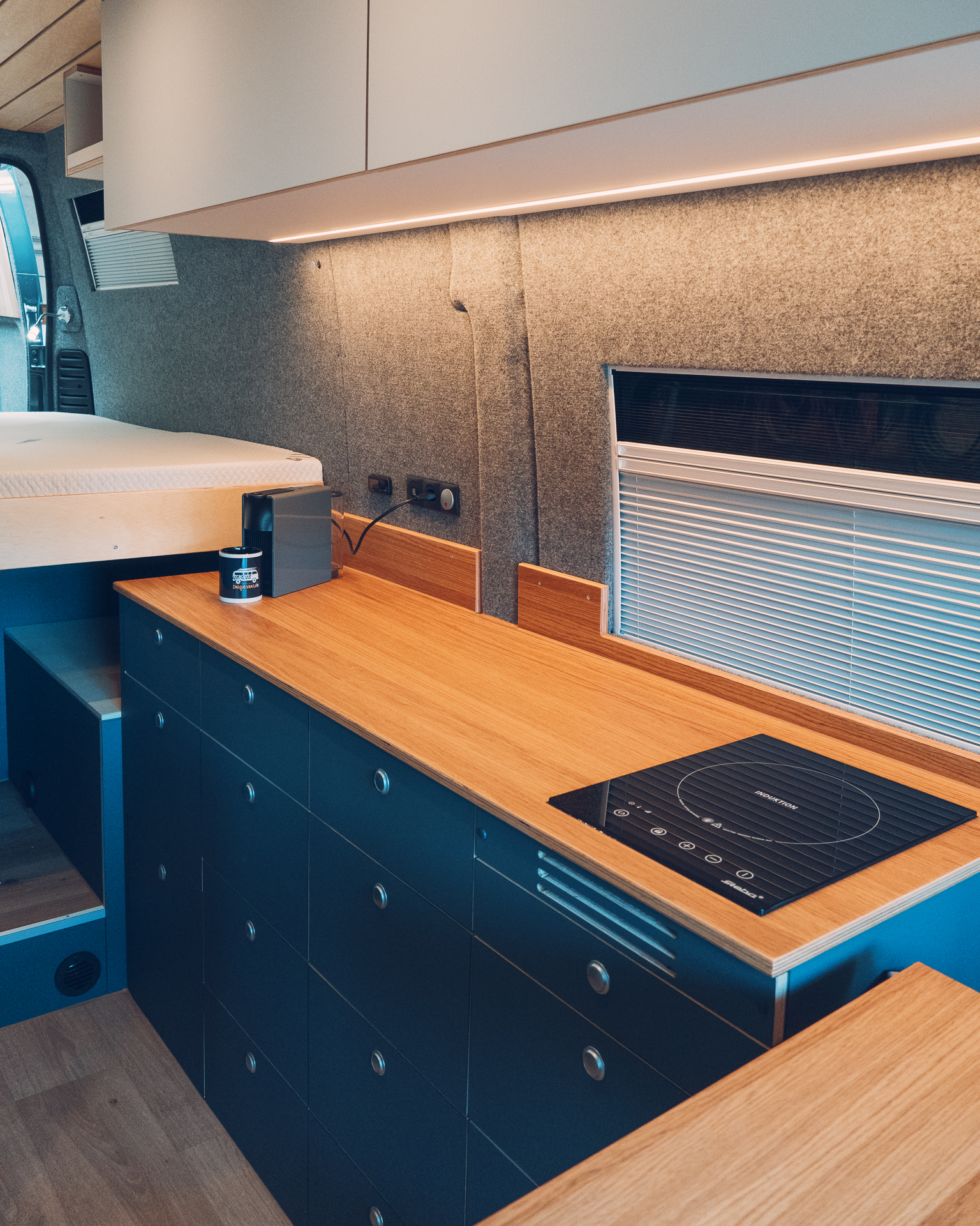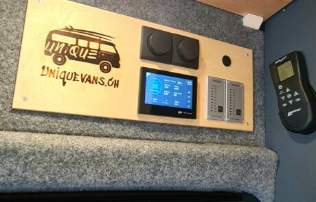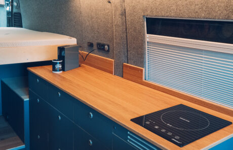 Der Camper ist mit einer umfangreichen Elektroinstallation ausgestattet, die ein autarkes Stehen über mehrere Tage problemlos möglich macht. Bei diesem Projekt wurde zudem viel Wert auf Leichtbau gelegt, damit die Kunden auf nichts verzichten müssen.