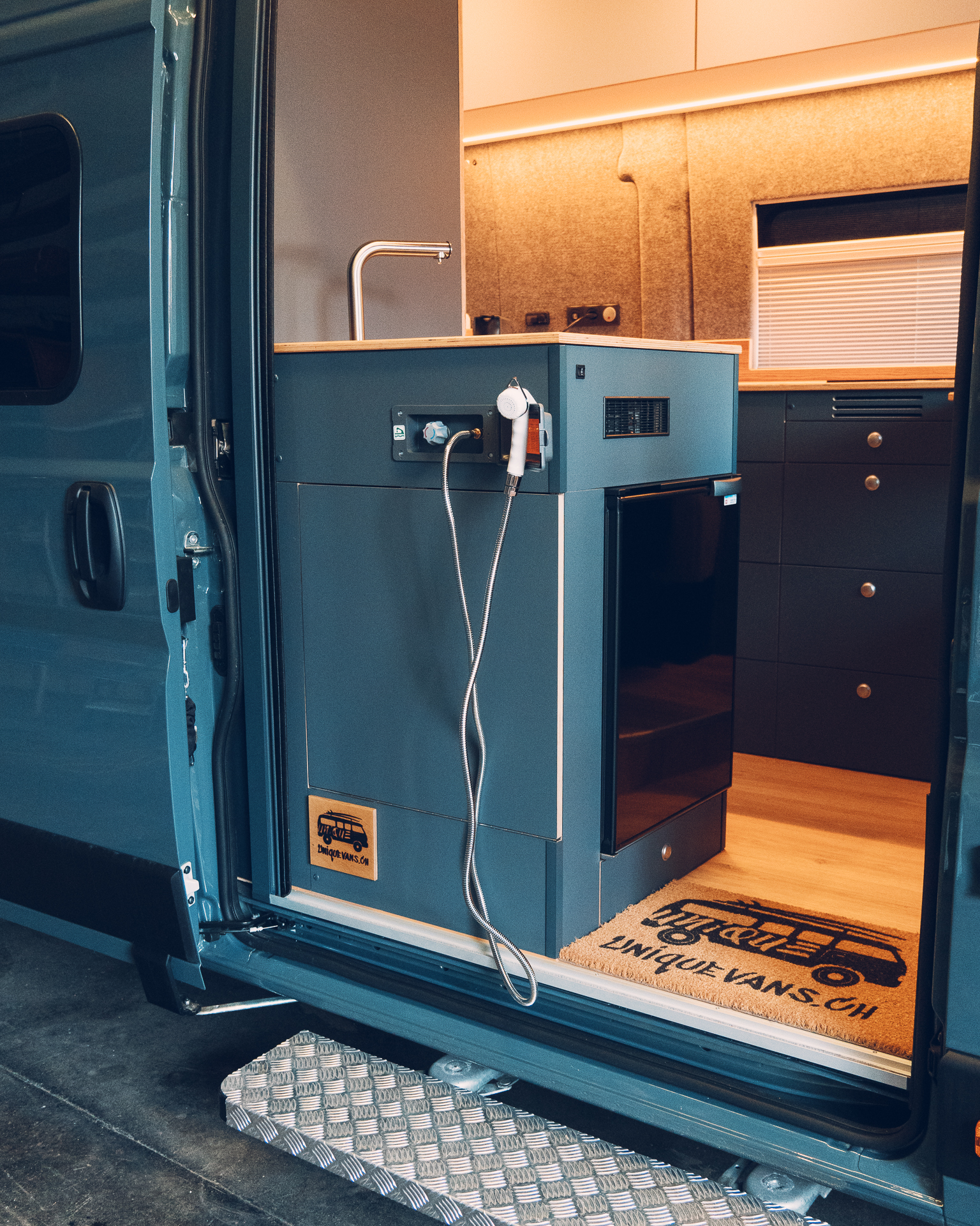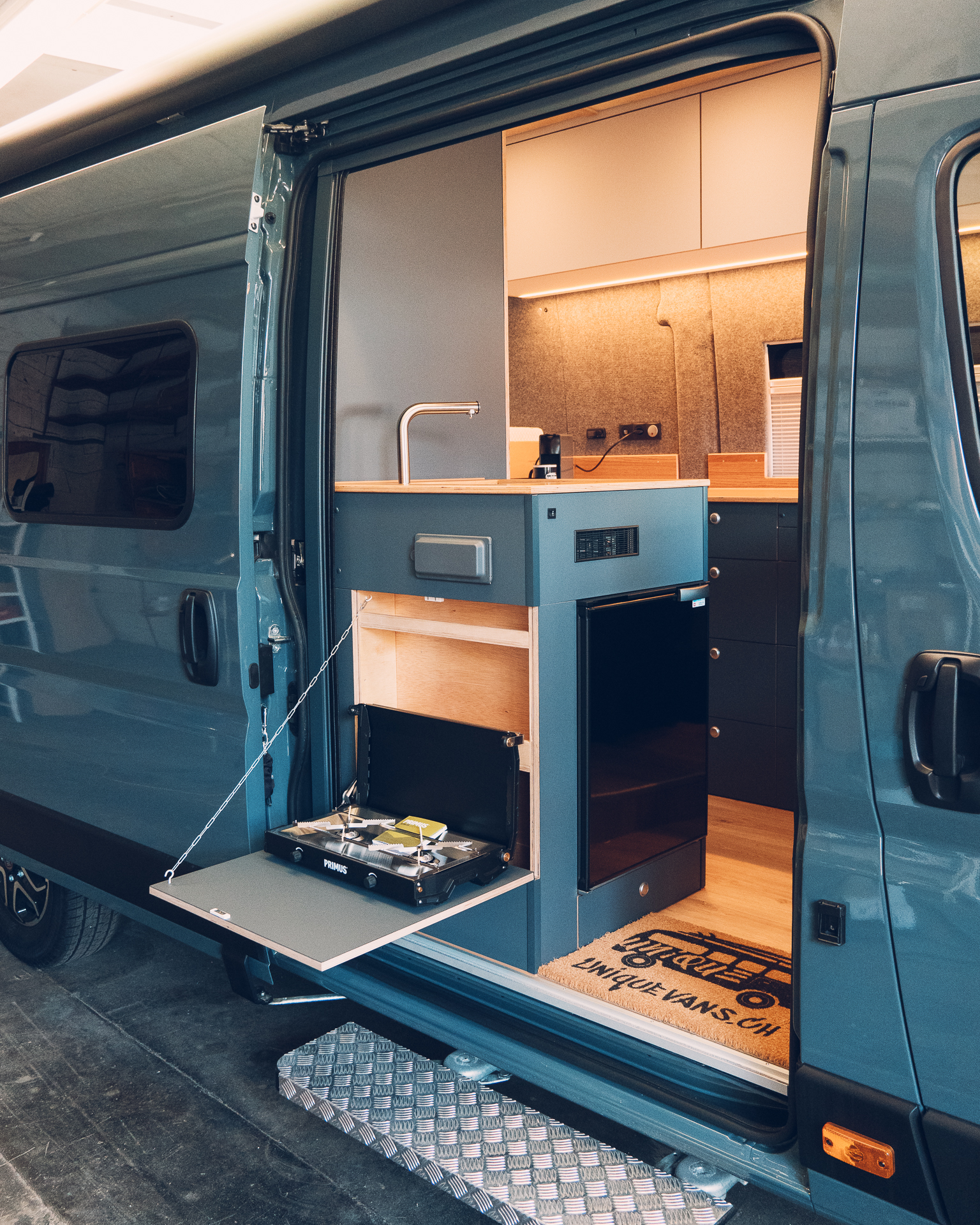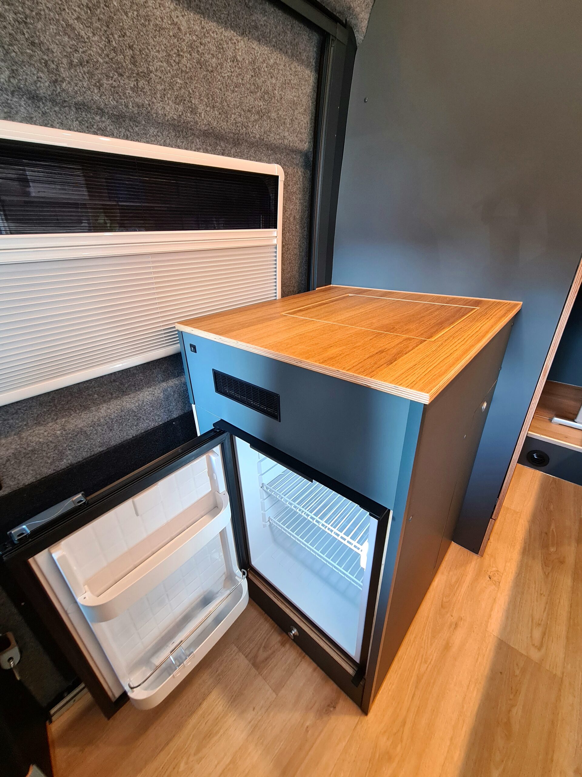 Der Camper ist mit einer umfangreichen Elektroinstallation ausgestattet, die ein autarkes Stehen über mehrere Tage problemlos möglich macht. Bei diesem Projekt wurde zudem viel Wert auf Leichtbau gelegt, damit die Kunden auf nichts verzichten müssen.